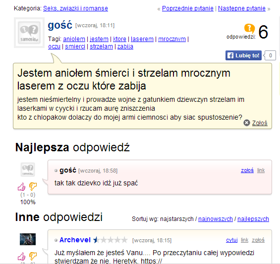 To są problemy, którymi żyje nasza polska młodzież. Ale uwaga – wchodząc na Samosię trzeba uważać – bo po pierwsze wciąga a po drugie nie wszystko trzeba traktować dosłownie 😉