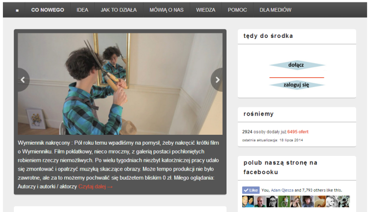 Wymiennik to niesamowity projekt – bo wywraca do góry nogami to czego uczyli Cię w szkole. Że gospodarka wymienna skończyła się razem z epoką kamienia łupanego (ok, jest to skrót myślowy, nie czepiajcie się). Jak działa? „Maja chce zjeść domowy obiad, ale nie potrafi gotować. Wchodzi więc na wymiennik i znajduje ogłoszenie kucharza Igora, który tworzy smakowite cuda. Maja odwiedza Igora i wychodzi od niego bogatsza o pyszności i nową znajomość. Potem Igor loguje się w wymienniku i zapisuje na swoim koncie 20 punktów (zwanych alterkami), które zostają odjęte od konta Mai. Za jakiś czas ktoś inny skorzysta z umiejętności Mai, która potrafi szyć piękne wełniane czapy – wtedy to Maja zdobywa co nieco alterek. I tak to się kręci, wiruje, krąży i wraca.”